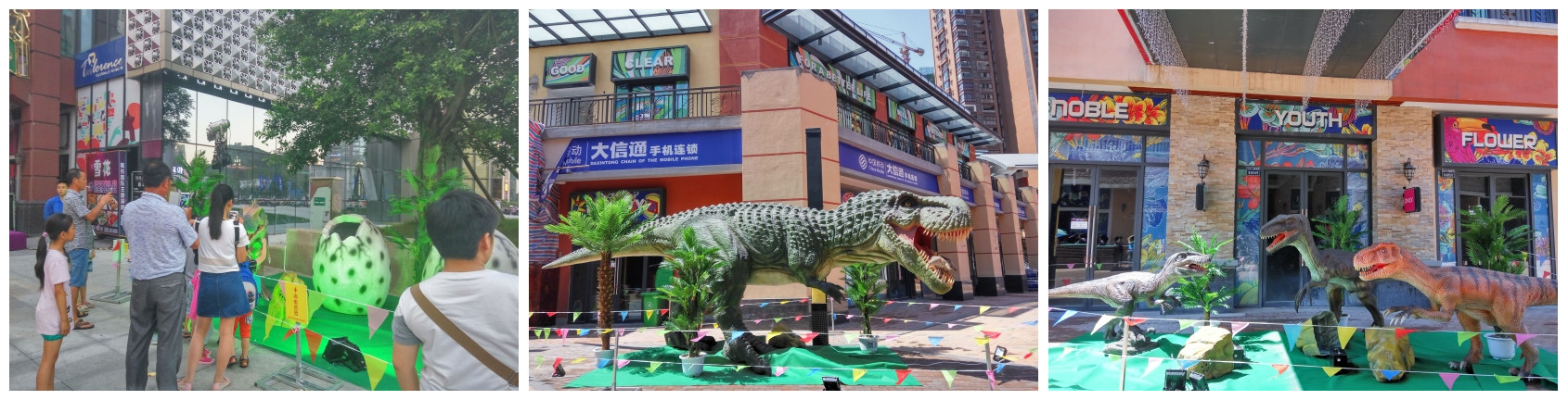6月18日,由自貢藝思特恐龍彩燈科技有限公司與萬(wàn)達(dá)金街聯(lián)手合作的“慶萬(wàn)達(dá)金街周年慶——重返侏羅紀(jì)”恐龍展在萬(wàn)達(dá)金街盛大開(kāi)展,逼真的形態(tài)、震撼的吼叫、變化的動(dòng)作為商場(chǎng)吸引了大批顧客駐足參觀、拍照,現(xiàn)場(chǎng)游客嘖嘖稱(chēng)奇,活動(dòng)取得圓滿(mǎn)成功。