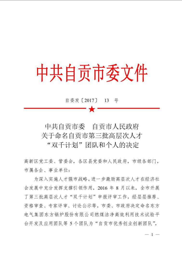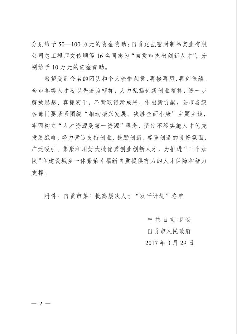 本次自貢市高層次人才“千人計劃-杰出創(chuàng)新人才”命名表彰會將于4月舉行。