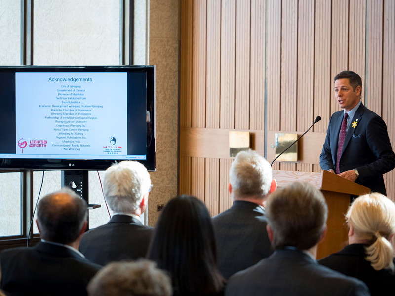 溫尼伯市市長(zhǎng)BRIAN BOWMAN發(fā)布會(huì)上誠邀天下客,共賞東方燈,他說:“北境之光——溫尼伯中華彩燈嘉年華”是“2018中加旅游年”的重頭戲,我們非常期待本次活動(dòng),屆時(shí)悠久璀璨的中華文明將帶給加拿大民眾一場(chǎng)神奇的光影之旅,也誠摯邀請(qǐng)各國游客來溫尼伯做客。在4月5日召開的曼省議會(huì)上專題介紹了本次燈展,并對(duì)燈會(huì)給予了高度評(píng)價(jià)。會(huì)上全體省議員集體起立,為燈展項(xiàng)目鼓掌一分鐘。