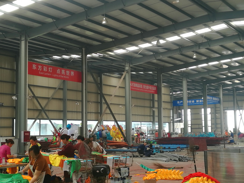 初夏寂靜的板倉(cāng)工業(yè)園區(qū),東方彩燈出口生產(chǎn)基地呈現(xiàn)一派熱火朝天,繁忙的景象,燈貿(mào)集團(tuán)2018年“北境之光——溫尼伯中華彩燈嘉年華”燈組制作工作正緊鑼密鼓而又井然有序的進(jìn)行著。參加燈組制作的工人揮汗如雨:電焊、接線、切割、裱糊......焊花飛濺,綢緞翻舞,精美絕倫,栩栩如生的彩燈浸印著彩燈藝人的汗水,展示了彩燈工匠的技藝。