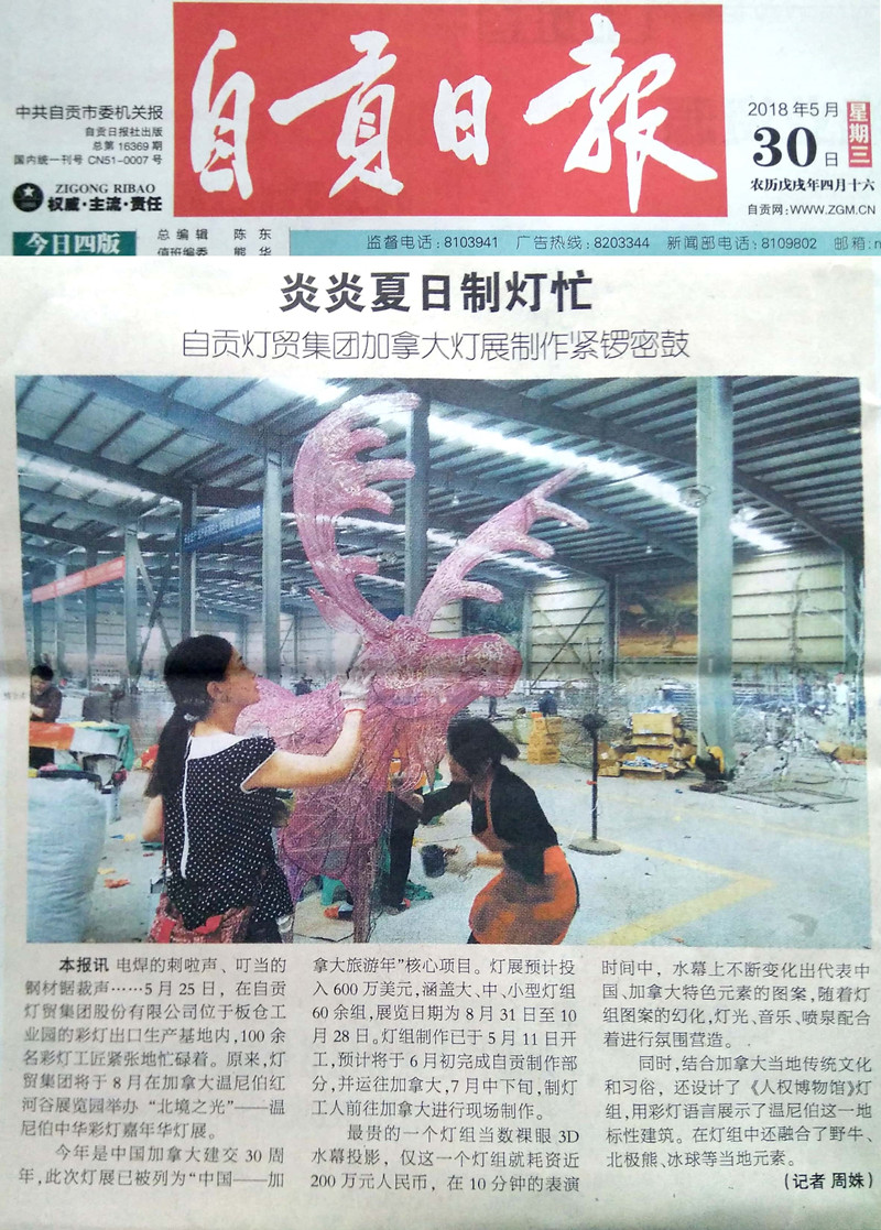 “北境之光——溫尼伯中華彩燈嘉年華”是“2018中加旅游年”的重頭戲,也是“中國(guó)-加拿大旅游年”核心項(xiàng)目,本次燈展得到自貢市委、市政府、自流井區(qū)委、區(qū)政府、自貢文廣新局、市商務(wù)局、自貢文旅投集團(tuán)的高度重視和關(guān)心。自貢日?qǐng)?bào)記者專程來(lái)到燈貿(mào)集團(tuán)對(duì)本次燈展進(jìn)行了專訪。