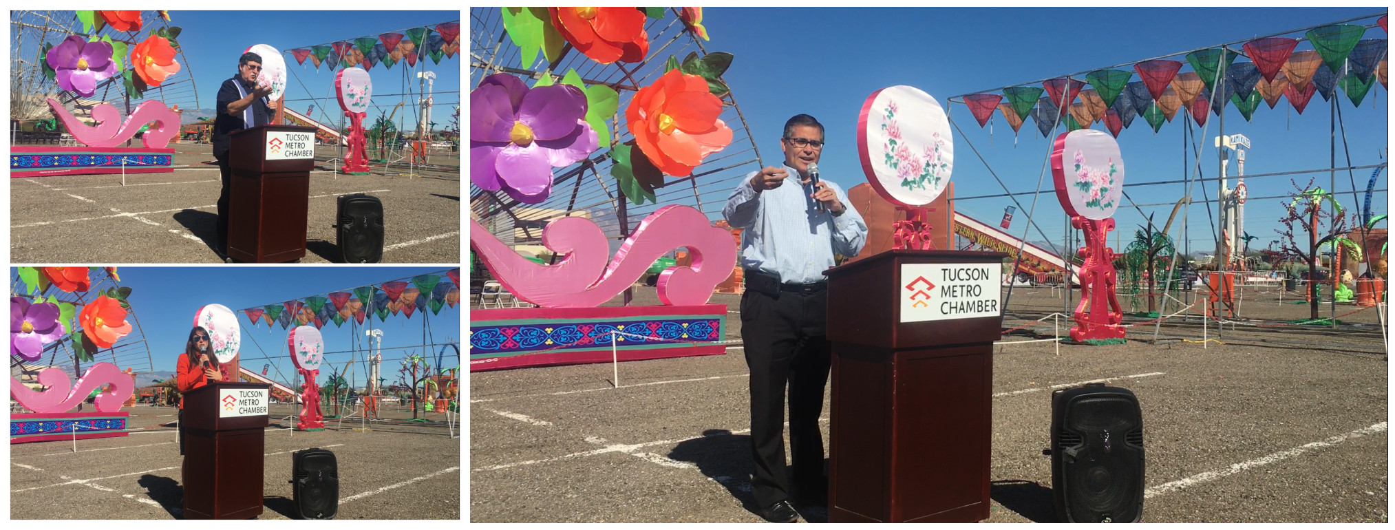 Pima郡行政長官Ramon Valadez,圖森市常務(wù)副市長Richard G. Fimbres,圖森市大都會商會董事長Amber Smith分別發(fā)表致辭,感謝本次燈展活動對中美文化交流作出的巨大貢獻(xiàn),希望促進(jìn)多元化的世界文化交流。他們在講話中贊嘆東方彩燈精妙絕倫的制燈工藝,稱“2018世界之光圖森彩燈嘉年華”用傳統(tǒng)、時(shí)尚、新鮮、現(xiàn)代的元素直面美國觀眾。當(dāng)?shù)仉娕_、電視臺、報(bào)紙等17家新聞媒體出席新聞發(fā)布會并對燈展進(jìn)行了相關(guān)報(bào)道。
