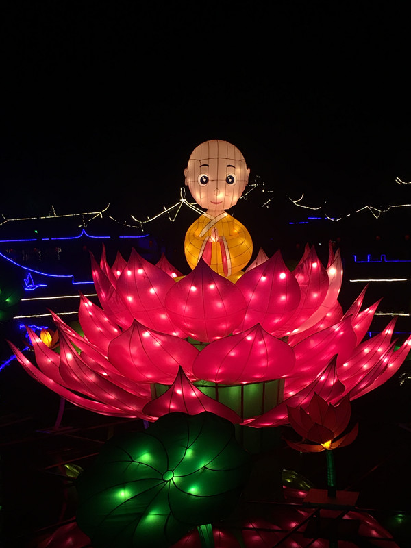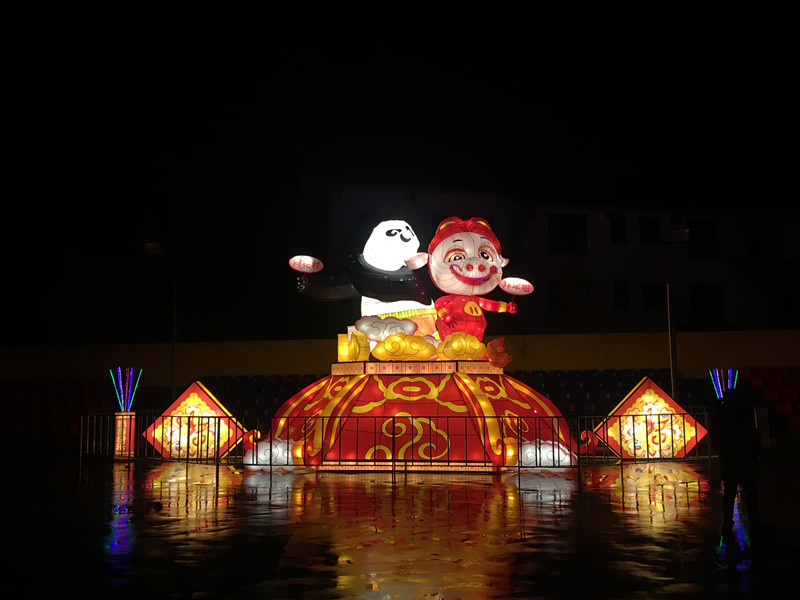 《荷塘月色》、《和和滿(mǎn)滿(mǎn)》、《恭賀新春》、《錦鯉滿(mǎn)堂》、《蓮花童子》等新年主題燈組千姿百態(tài)、色彩斑斕,憨態(tài)可掬的國(guó)寶熊貓與吉祥“豬”牽手共同向人們拜年,