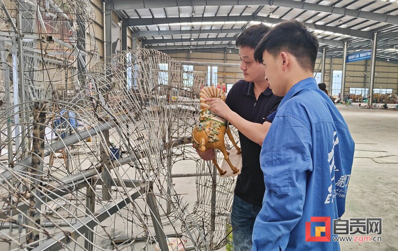 8月10日下午,記者走進自貢燈貿集團股份有限公司生產車間,專訪燈貿集團“唐風華韻”展品項目。4名彩燈造型師就像魔術師一般,讓手中冰冷鋼絲,變成了栩栩如生的造型。“從7月中旬以來,我們就開始進場施工,工作時并不覺得熱,常常引來一旁同事的關心?!痹?0多度的高溫下,38歲的彩燈造型師楊勝平因為太投入創(chuàng)作,衣服濕了又穿干,還全然不知。